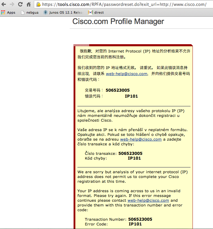 Finally I've found a site which does not work ;-) https://tools.cisco.com/RPFA/passwordreset.do?exit_url=http://www.cisco.com/ "We are sorry but analysis of your internet protocol (IP) address does not permit us to complete your Cisco registration at this time. Your IP address is coming across to us in an invalid format." Lovely ;) On Sun, Oct 13, 2013 at 12:04 PM, Marco Hogewoning <marcoh at marcoh.net> wrote: > "It's an IPv6 Working Group Initiative!" > > Dear Colleagues, > > Following the discussion at RIPE 66, the IPv6 Working Group is happy to provide you with an experimental network that is configured to offer only IPv6. This experimental network is not supported by the RIPE NCC or RIPE 67 Technical Team. > > We encourage everybody to connect to this network and test any websites, applications, hardware and software, and verify that they operate when an IPv4 address is no longer available. > > Important: This network is an experiment and is offered on a best-effort basis. We will try to maintain sufficient service levels and are happy to look into and help troubleshoot any issues you may encounter. If you rely on network connectivity for important business, we recommend you connect to the regular RIPE Meeting network. > > How to connect: > > - Make sure IPv6 is enabled on your device > - Connect to SSID: IPV6ONLYEXP > - Enter the password: iknowbesteffort > > The network provides NAT64 translation to connect to legacy services – please use the name server provided by the network to make use of this feature. We suggest you leave IPv4 enabled as this will be the scenario for most end users. > > Feedback: > > Please see Marco Hogewoning or Andrew Yourtchenko for any issues. > > We invite you to attend the IPv6 Working Group session on Thursday from 9:00-10:30 > to discuss the results of this experiment. And of course you are welcome to follow up on this mailing list. > > Greetings, > > Marco Hogewoning > Andrew Yourtchenko > > -- SY, Jen Linkova aka Furry -------------- next part -------------- A non-text attachment was scrubbed... Name: cco.png Type: image/png Size: 149287 bytes Desc: not available URL: </ripe/mail/archives/ipv6-wg/attachments/20131016/f15a4c74/attachment.png>