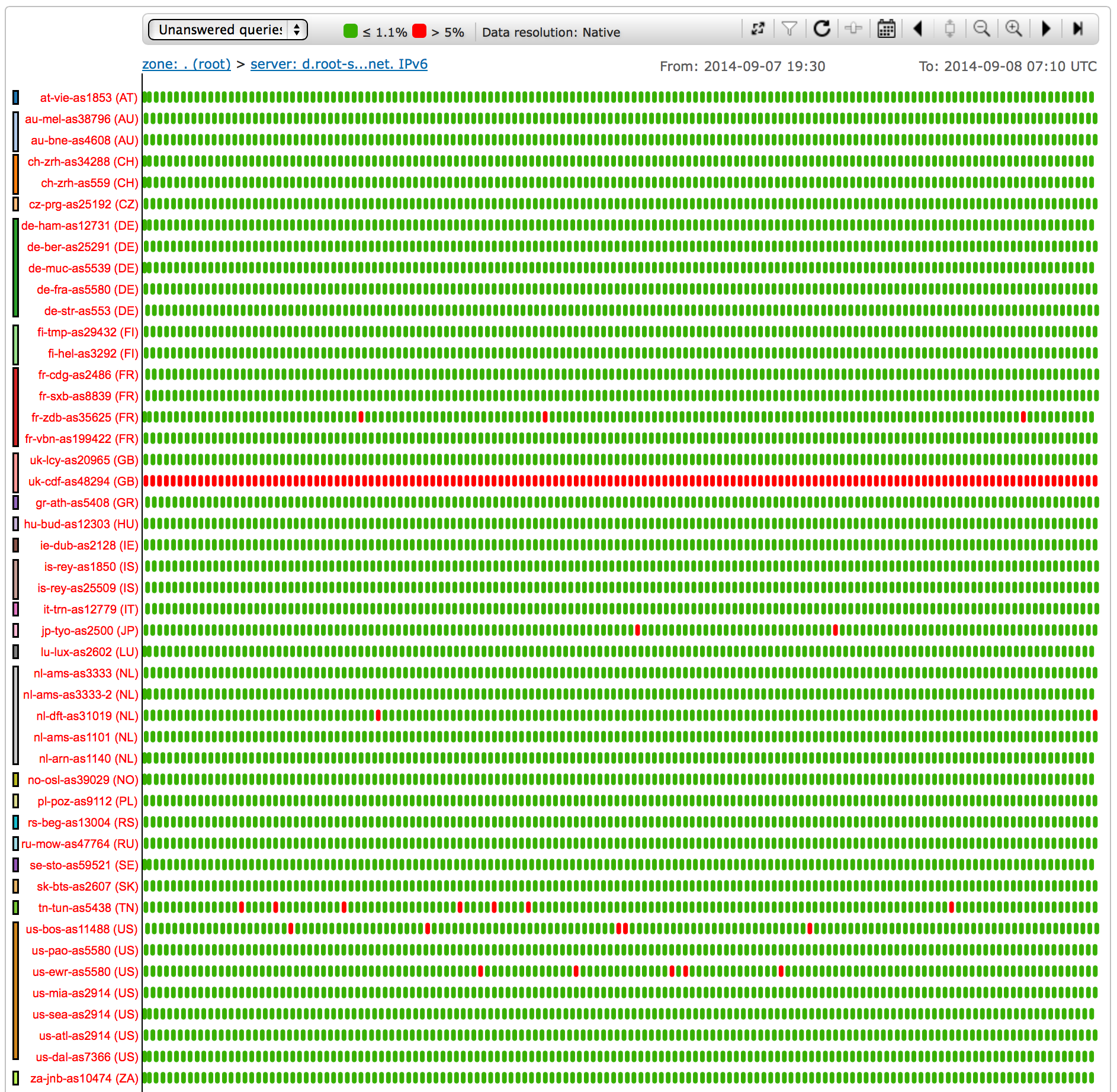 Anything that can be done about the bad AS48294 probe, that doesn’t actually have IPv6 connectivity? Can you have it stop reporting its lack of IPv6 connectivity, or exclude it from results, or something? It makes it hard to see what’s going on in overview results, if it’s constantly adding to the floor of measurements it contributes to. Obviously, I’d prefer a generalized solution that applied to all such non-functional probes.